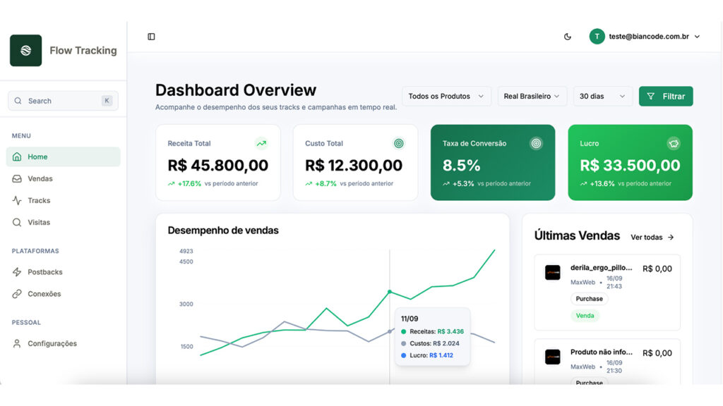 Flow Tracking é uma ferramenta de tracking desenvolvida para ajudar afiliados a rastrear cliques, vendas e conversões das campanhas.